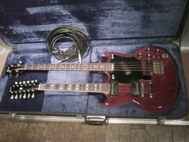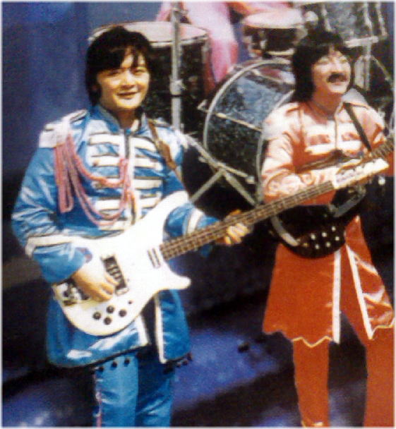 10歳年上の従兄弟からサイケに塗られたガット・ギターを500円で譲り受ける。 ●1972年 NHKヤング・ミュージック・ショーでEL&Pを目撃〜これまた強い衝撃を受ける!! EL&Pの曲をコピりまくり開始。 中1の時、初めてのベース・ギター(アリアダイヤモンドのVB)をお弁当代を貯めて購入。ビートルズ・コピーバンド結成(笑) 行方不明 ![]() ![]() 高校1年、レッド・ゼップの映画「永遠の詩」日本上映を期に、、、、コピーバンド「ドシャ〜〜ン」を結成!! 地元の有名ゼップバンド「シナモン」のボーカル候補との噂もあったらしい・・・^^; この頃二本目のベース、アリアプロIIのRB650(試作品)を使用開始。 行方不明。残念!!! ![]() ●1979年 大学1年の冬、プログレッシブ・ロック・バンド「GOMA」を結成!!